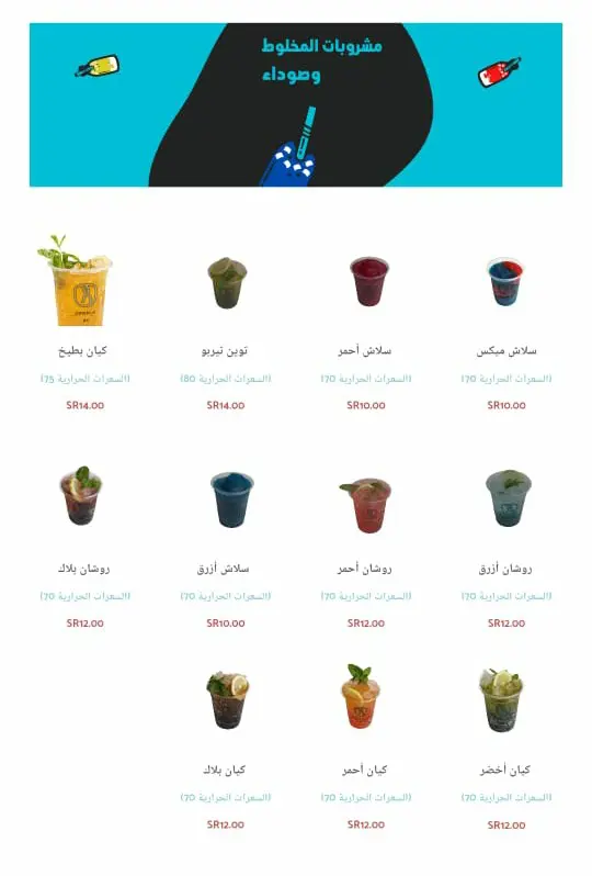 منيو مشروبات المخلوط وصوداء